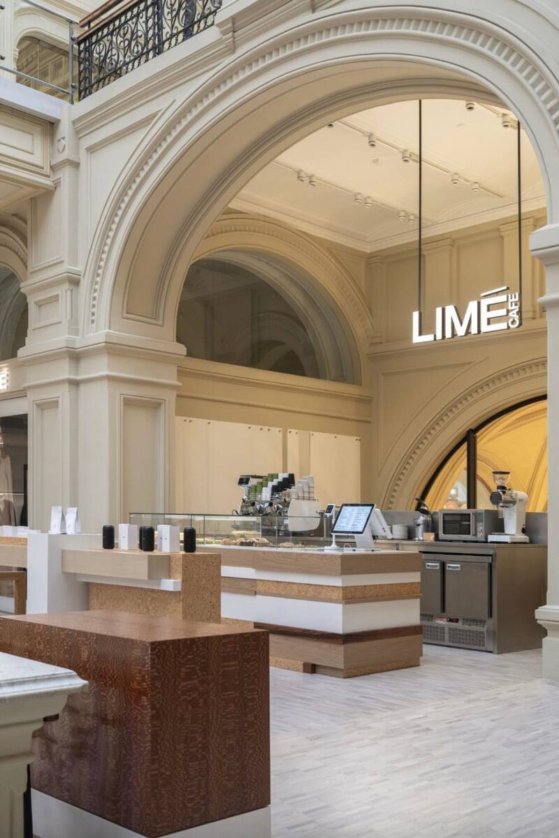 Интерьер отсылает к миру моды: детали напоминают выкройки, ткани и рабочие столы ателье. В меню — десерты и напитки, включая фирменные пирожные с логотипом, рулеты, лимонады и кофе. Меню будет обновляться по сезонам, подстраиваясь под новые коллекции бренда.