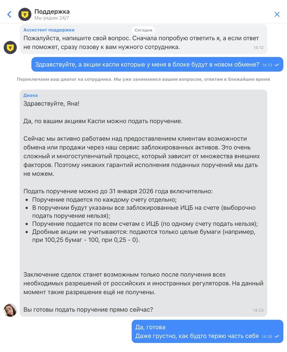 ? Всегда. Вот я и перестану быть акционером Каспи банка, не смогу пролоббировать сосисочные облиг в Казахстане. Тинек сделал максимально странно, перечня нет, каждый пишет в поддержку и спрашивает можно ли менять. Действуйте братья. (с) Сосбух @sosisochnayagazeta