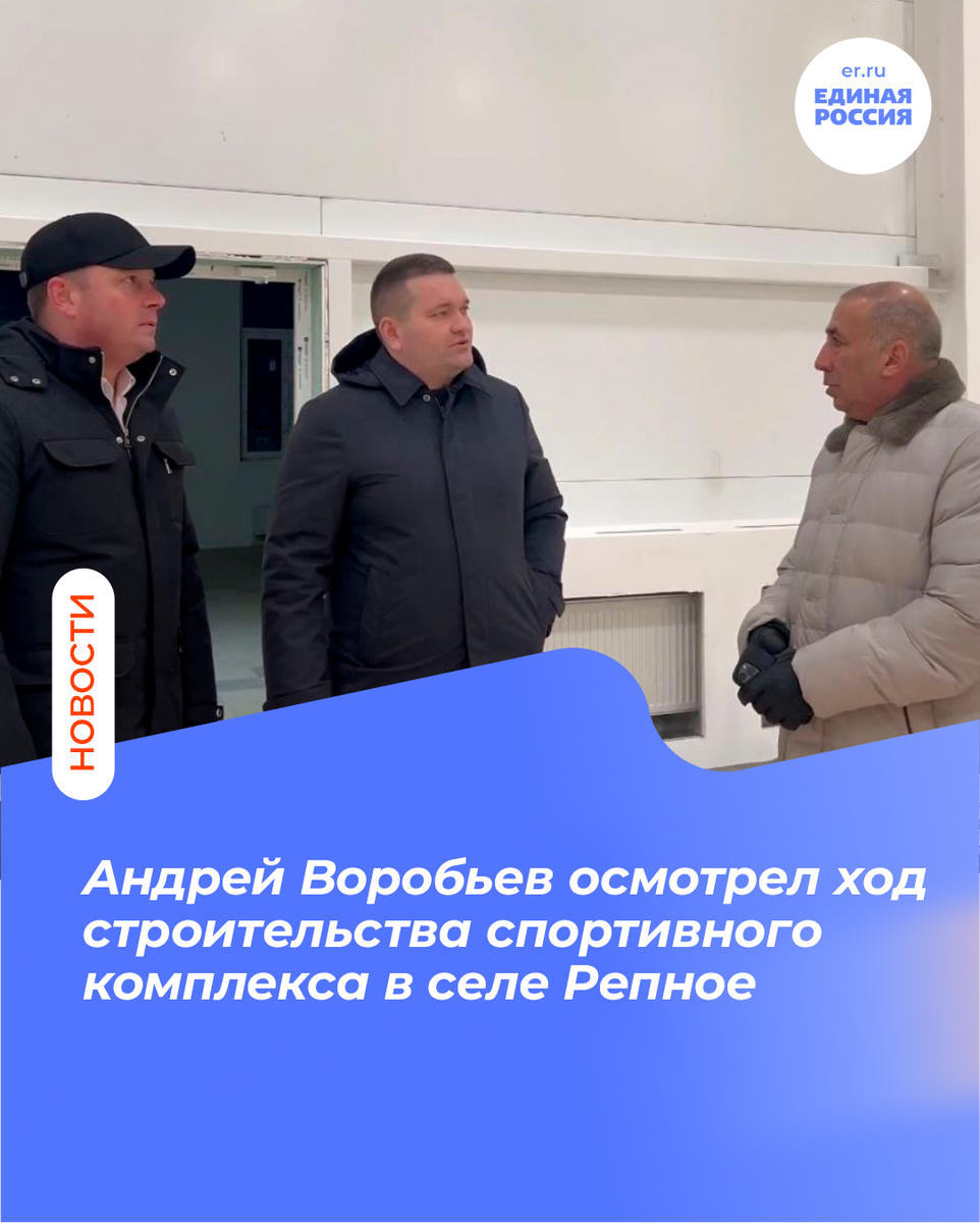 ✅Депутат Госдумы Андрей Воробьев («Единая Россия») посмотрел, как идут работы по строительству многофункционального спортивно-досугового комплекса селе Репное Балашовского района.