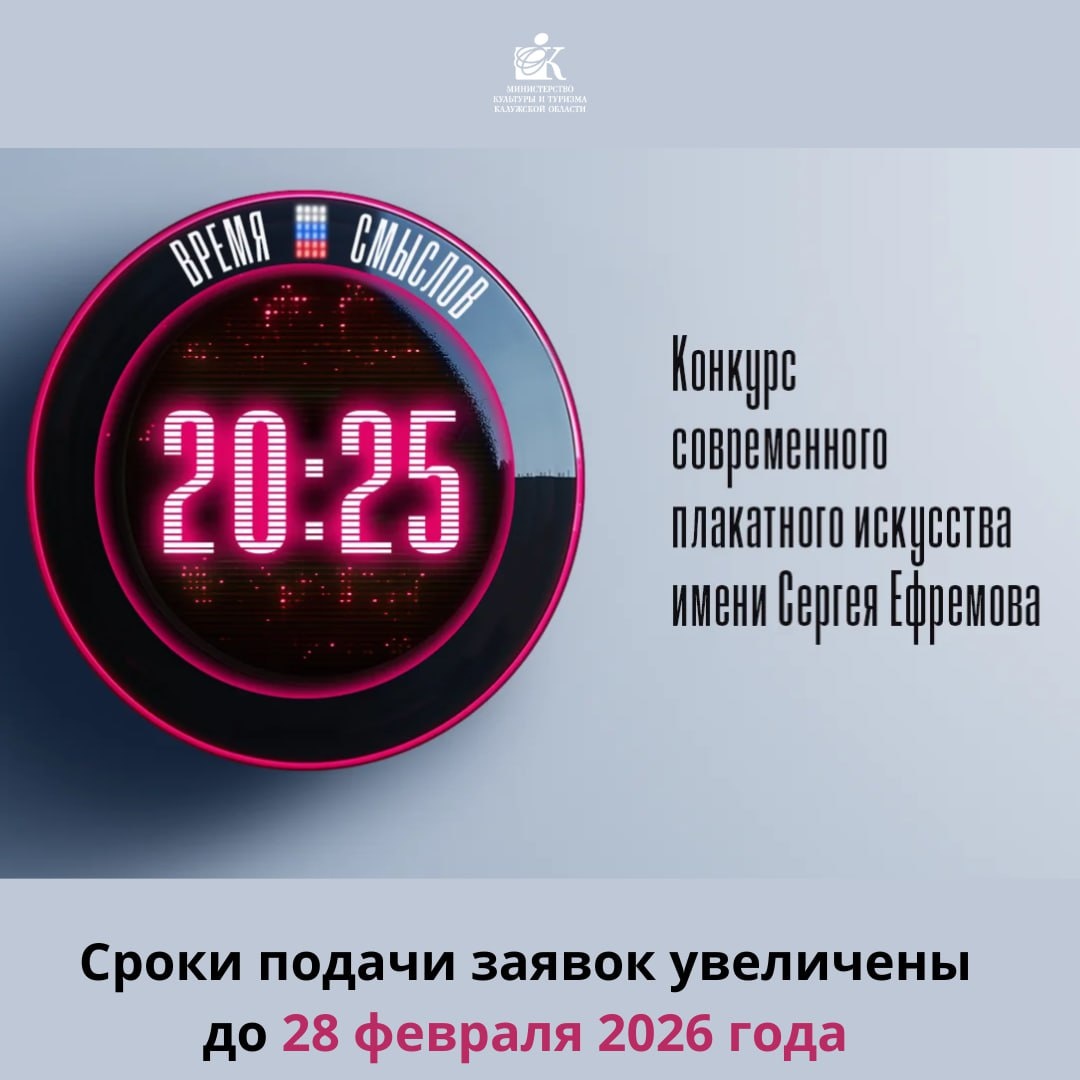 ! 🎨 Приём заявок на Конкурс современного плакатного искусства имени Сергея Ефремова продлён до февраля 2026 года! Это ваш шанс заявить о себе на всероссийской площадке и раскрыть свой талант для широкой аудитории. ✔️ Международное участие — для авторов из любой страны, разделяющих наши ценности. ✔️ Отдельная категория «Надежда России» — для юных дарований от 10 до 16 лет. ✔️ Актуальность без границ — принимаются работы любого года создания, даже известные лишь в узких кругах. ✔️ Полная открытость — мы покажем все заявленные работы, без исключений. ✔️ Современные форматы — принимаются: графика, живопись, цифровое искусство, в том числе созданное с помощью ИИ. 👉 Подробности, требования к работам и подача заявок на официальном сайте конкурса: https://конкурсефремова.рф/index#about