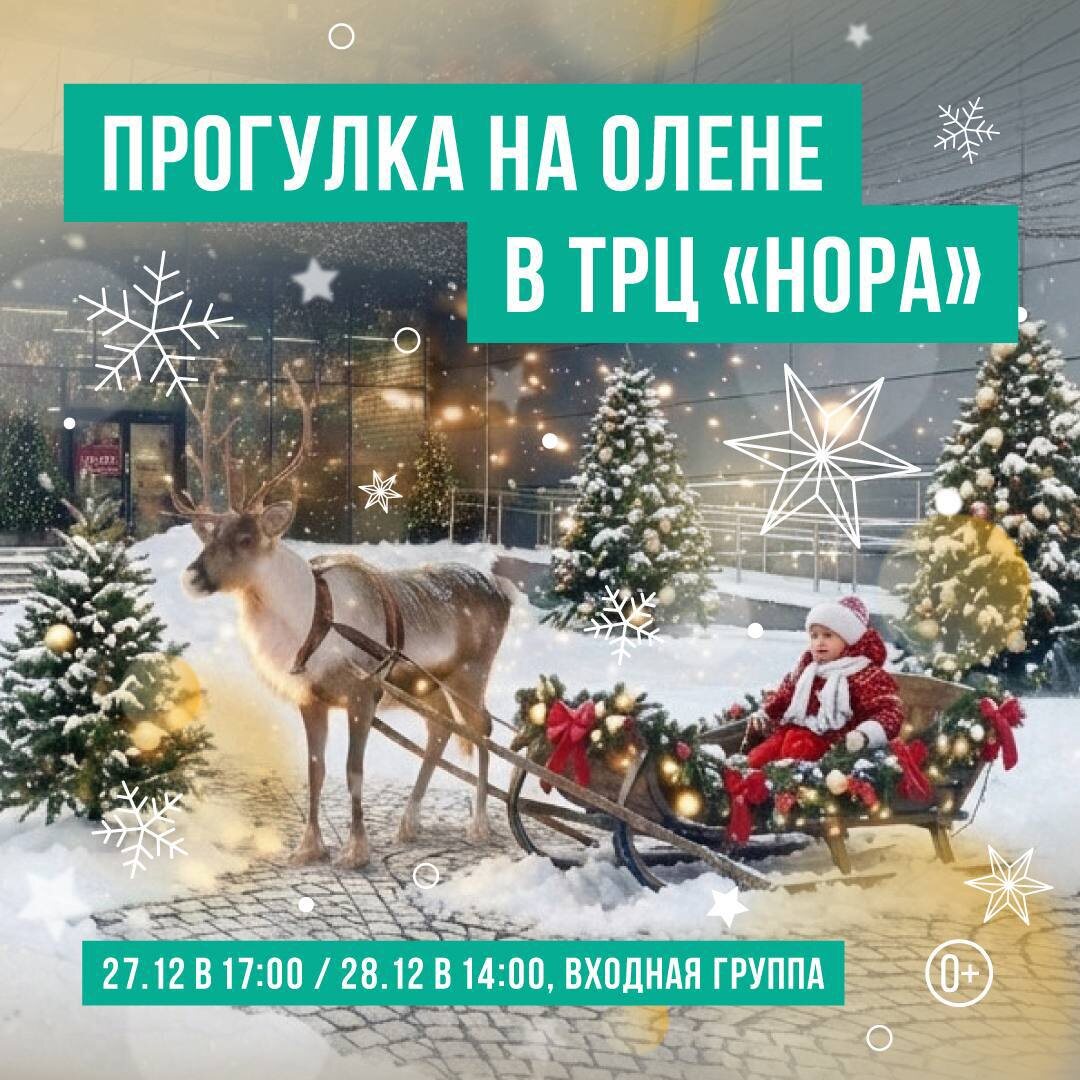»! 🦌❄️🦌 📍ТРЦ «Нора», 1 этаж, 🗓️27 декабря в 17:00, 28 декабря в 14:00 Живые олени, зимняя атмосфера, радость для детей и взрослых и возможность сделать волшебные фотографии. 🦌❄️🦌 Почувствуйте себя в новогодней сказке, не выезжая из города! 🦌❄️🦌 Количество катаний ограничено – приходите заранее. Встречаем Новый год вместе в ТРЦ «Нора» Подробнее ЗДЕСЬ @Together_with_kids Пост носит информационный характер Поддержать канал голосом ЗДЕСЬ