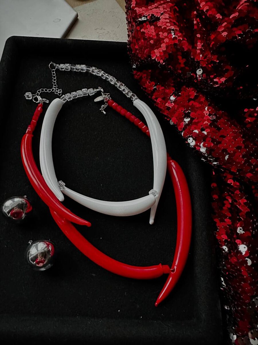 … За то нашла беспроигрышный вариант: что делать если украшение/платье/новогодний аксессуар не успевает прийти во время… Объединяйте вместе черный, красный, белый, пропорции могут быть любые. Даже если это только красная губная помада 💄 Количество блеска: пайетки, сверкающее серебро - на ваш вкус. Праздничный образ сложится сам! Колье Пламя 🔥 в цвете Pantone’2026 7500₽ Оформить заказ и получить стилистическую консультацию, пишите в @PJ_murano_bot