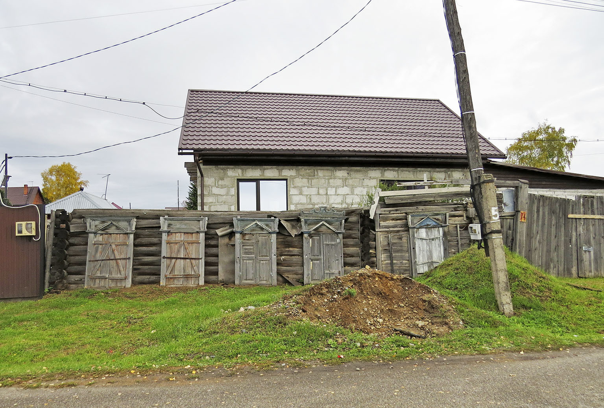 Улицу Перенсона в старинном Енисейске можно считать "непарадной" - "суздализация" к 400-летию города (2019 год) сюда не добралась, хотя главные достопримечательности совсем рядом. Но здесь - заборы из фасадов старых изб (кадр выше): Архаичная "фряжская резьба", проникшая сюда во времена "золотой лихорадки": И даже пара городских домов конца 18 века, принадлежавших неким Беъязыкову (ближе) и Нечаеву (дальше): Увы, как и большинство таких в Сибири, в состоянии не очень-то восстановимом... Чуть лучше сохранился безымянный дом той же эпохи на параллельной улице Тамарова: