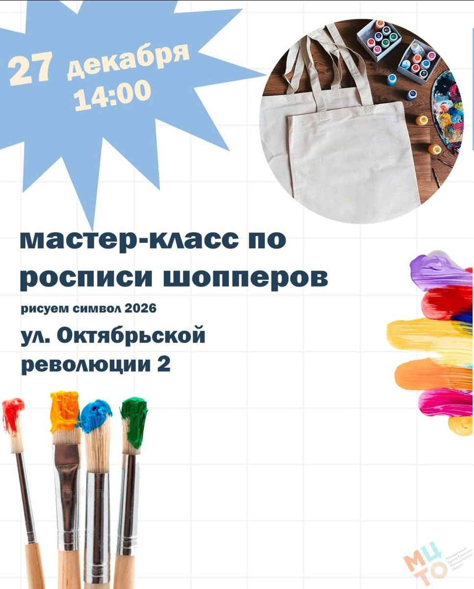 🎨 В Молодёжном центре пройдёт мастер-класс по росписи шопперов с символом 2026 года - лошадкой  🐴 14+ ⏰ 27 декабря, в 14:00 📍 ул. Октябрьской революции, 2 🎄Места ограничены, поэтому для участия необходима регистрация. Запись по телефону: +79124358103 Подробности в канале: t.me/tumolod93 @tuapse_afisha #новыйгод #мастеркласс #Туапсе #афишаТуапсе #кудасходитьвТуапсе #декабрь