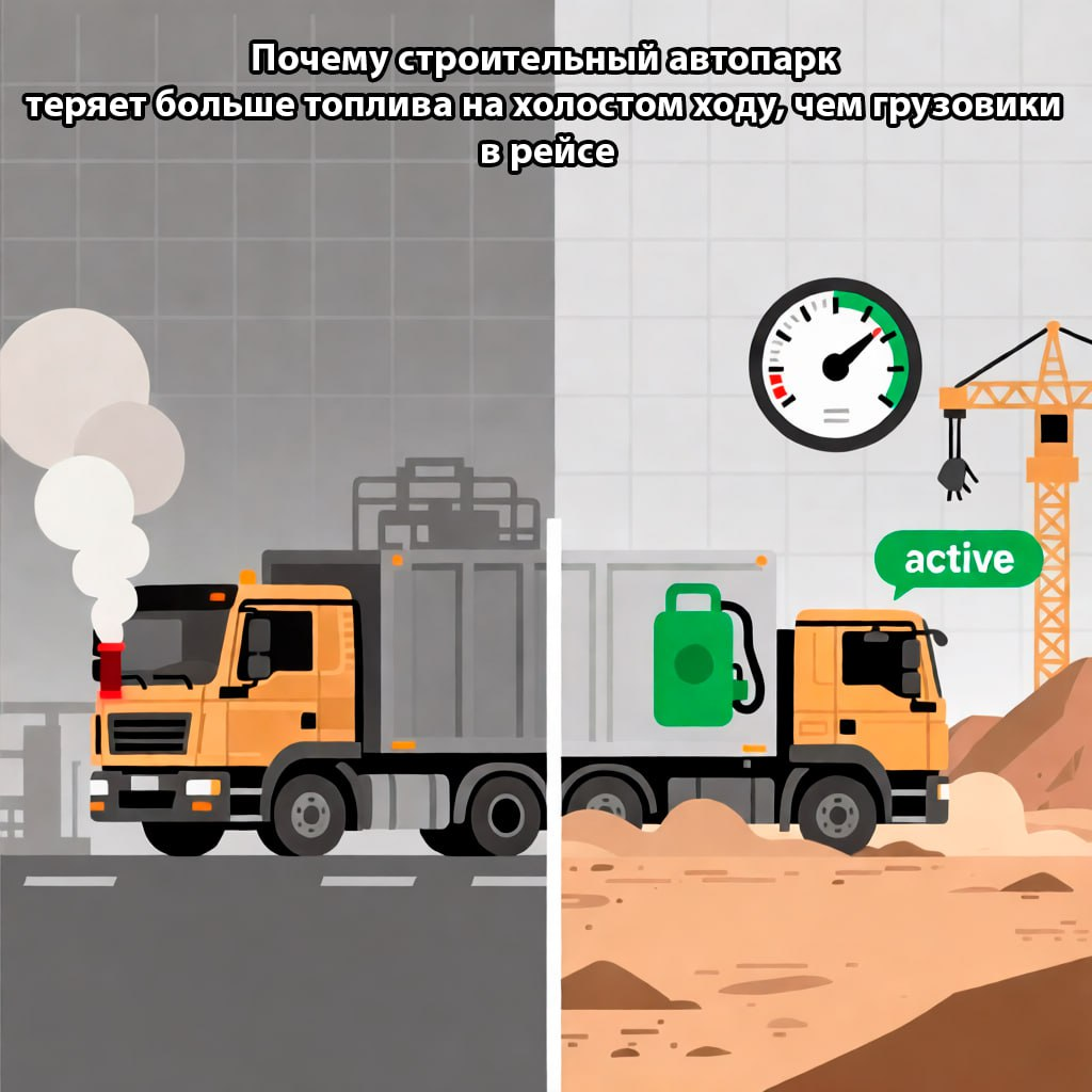 🏗 Почему строительный автопарк теряет больше топлива на холостом ходу, чем грузовики в рейсе