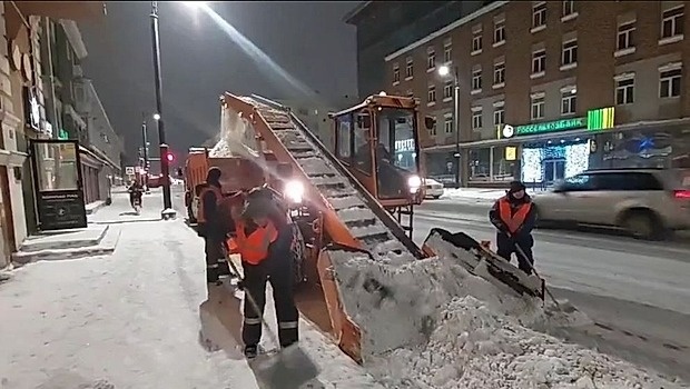 Коммунальные службы Уфы круглосуточно борются с последствиями снегопадов в городе. В Ленинском районе в уборке снега задействован лаповый снегопогрузчик. Специалисты считают его незаменимым помощником и называют «золотые ручки». Такая техника помогает оперативно и эффективно загружать в самосвалы снег, скол и лед, собранные в валы у обочины, благодаря вращающимся «лапам» и скребковому транспортеру. На ночную смену в Ленинском районе заступило 22 единицы техники. А в Кировском районе спецтехника совершила 53 рейса для вывоза снега. 19 машин были направлены в снегоплавильный пункт. За ночь коммунальные службы вывезли 1340 куб.м. снега. Фото: администрация г. Уфы. Ангелина Танич