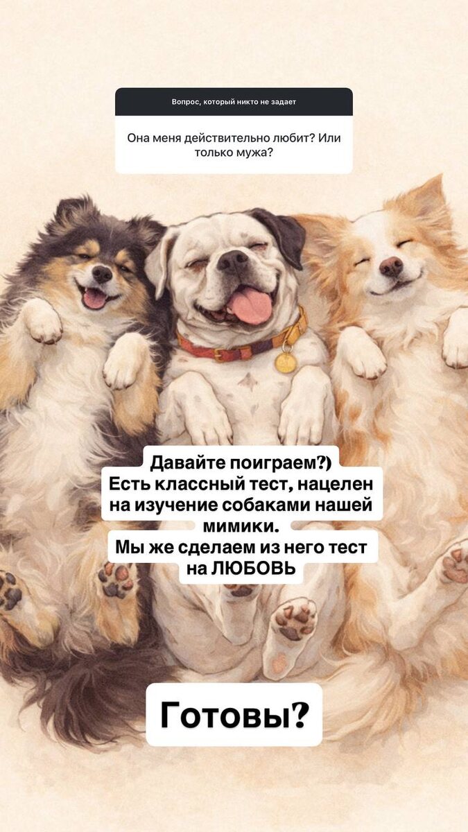Тест на ЛЮБОВЬ!❤️ 🟠 Условия теста • Собака в спокойном состоянии • Мы не зовём голосом • Смотрим 5–10 секунд и наблюдаем 1️⃣ Вариант «Любовь без повода» Что делаем: 👀 Просто смотрим на собаку Лицо нейтральное, не улыбаемся, не зовём Если собака: — сама завиляла хвостом — встала — подошла — начала ласкаться Значит: 💛 «Я тебя люблю даже без причины» Это высокая социальная активность и инициативная привязанность. Твоя собака выбирает тебя сама, без приглашения и без “причинения любви”. 2️⃣ Вариант «Ответ на эмоцию» Что делаем: 👀 Смотрим так же 🙂 Добавляем мимику — улыбаемся, показываем эмоцию лицом Если собака реагирует именно сейчас: — смягчается — подходит — начинает общение Значит: 🧡 «Я люблю, когда ты меня приглашаешь» Это очень здоровый тип связи. Собака считывает эмоции и откликается на твоё настроение. Причинение любви — через выражение чувств, а не давление. 3️⃣ Вариант «Любовь по запросу» Что делаем: 👀 Смотрим 🙂 Улыбаемся 🫶 Добавляем жесты: открытые руки, наклон корпуса