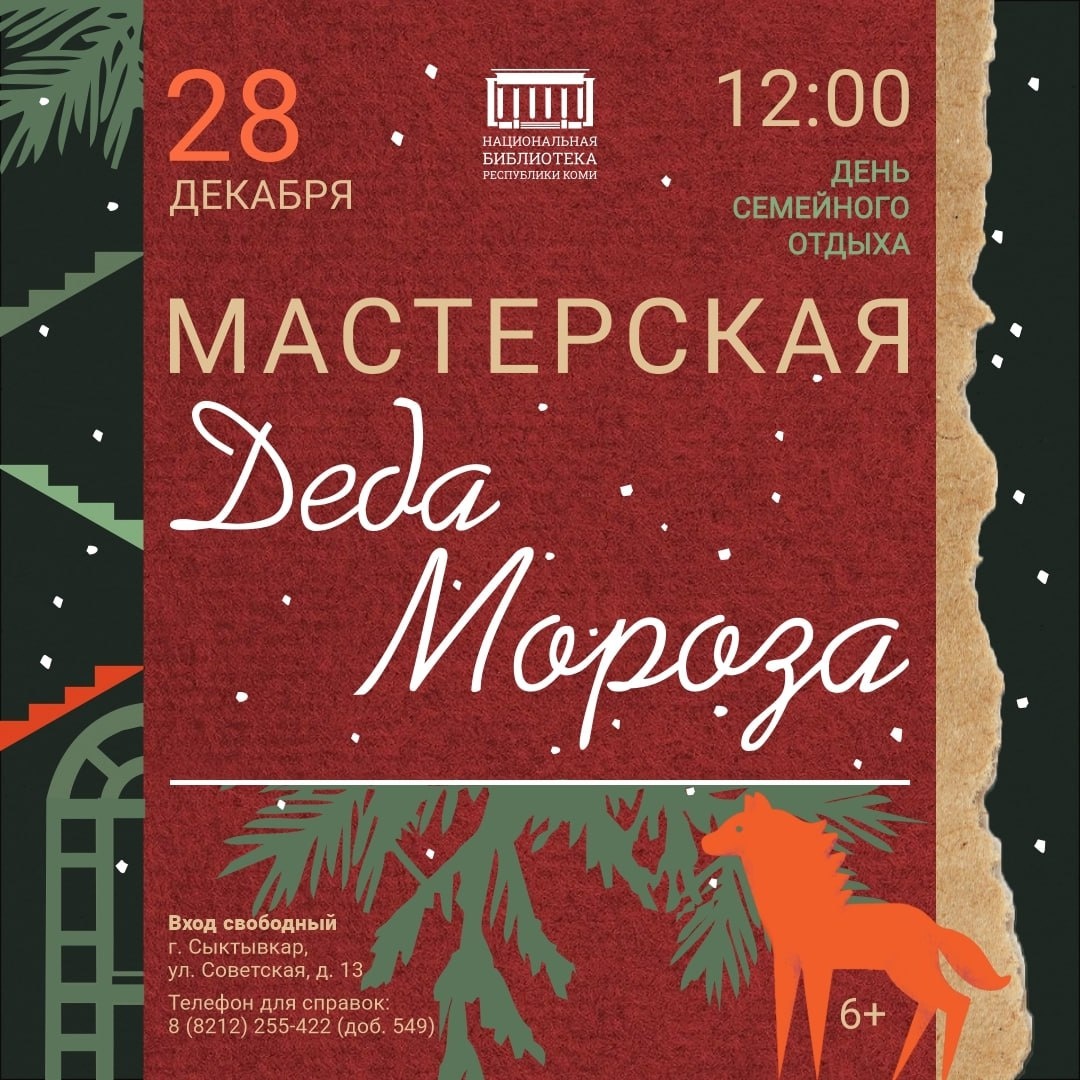 🎁 Нацбиблиотека Коми приглашает на день семейного отдыха с разными мастер-классами, где вы: — сделаете игрушки из ваты, солёного теста и бумаги — распишете деревянные значки, ёлочные игрушки и ароматные имбирные пряники — узнаете секреты изготовления ароматических свечей и открыток Также будет работать ярмарка изделий детей 7-18 лет. 📆 28 декабря 12:00 📍 Сыктывкар, ул. Советская, 13