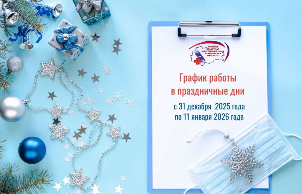 Курская областная многопрофильная клиническая больница опубликовала график работы своих подразделений с 31 декабря по 11 января. Стационар продолжит круглосуточно оказывать экстренную и неотложную помощь. Другие отделения переходят на особый режим: Полностью уходят на каникулы до 12 января отделение медосмотров и спортивной медицины (ул. Добролюбова, 9), отделение платных услуг (ул. Димитрова, 62) и отдел медосвидетельствования иностранцев (ул. Садовая, 40). С 12 января все службы вернутся к обычному расписанию .