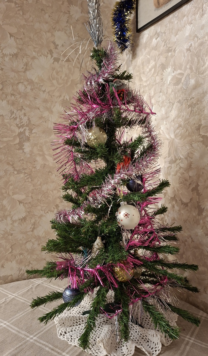 Маленькую искусственную елочку поставила, кактус украсила гирляндой.