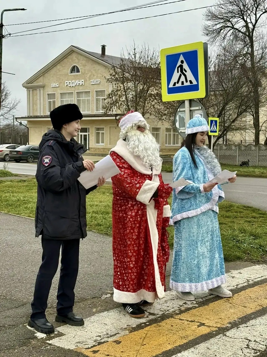 В преддверии наступления Нового года сотрудники Госавтоинспекции Гиагинского района, совместно с Дедом Морозом и Снегурочкой, провели