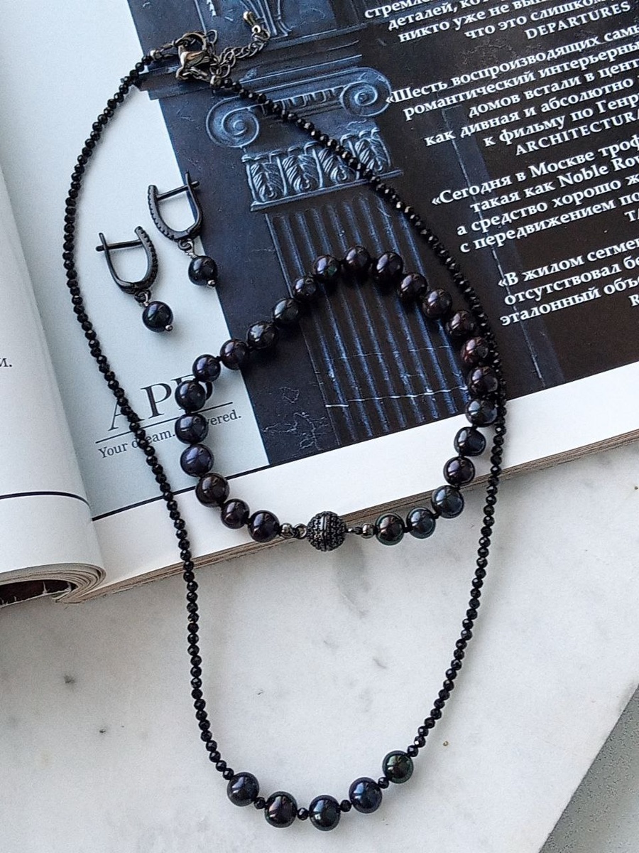 Бесподобный натуральный темный жемчуг, шпинель и черненая фурнитура 🔥