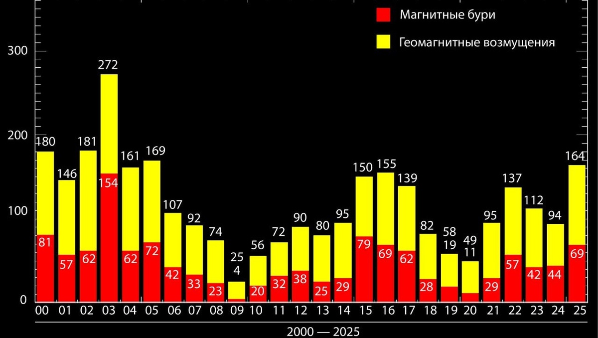 2025 год стал рекордным по числу магнитных бурь за последние 10 лет
