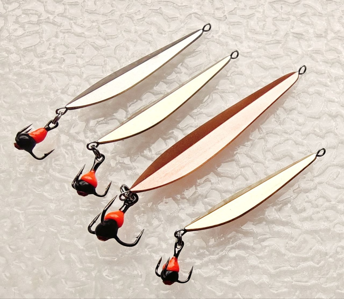 Привет, друзья! Прошлый зимний сезон был довольно удачным и задумок по новым блеснам было море. Но как то сезон быстро закончился, а новый все никак нормально не начнется. А потому пока только две новинки. И первая из них поступит в продажу буквально на днях. По сути это не более, чем обычный Маралистик, только обратная сторона тоже с коронкой, которая имеет ребро. Пока я сам их только попробовал на меленьком окуньке. Но рыбка реагирует, а главное - работа блесны под водой весьма четкая и предсказуемая. Сам же автор блесны ее катал в прошлом сезоне и остался доволен. Потому я ее без особых раздумий и пустил в серию. Название "Блик 120" и "Блик 140" в зависимости от угла раскрытия коронки. То есть 140 - блесна помедленнее и пошире. Будут они в четырех размерах и только с подвесным тройником (не впайки) 35мм, 40мм, 45мм, 50мм угол коронки 120° 35мм, 40мм, 45мм, 50мм угол коронки 140° Ну а чисто "на попробовать" Мастер прислал мне эти блесенки и в очень необычном исполнении. Попробуем и и