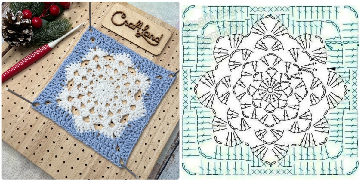 Вязать одно удовольствие, схема простейшая. Свяжите 8 мотивов, сшейте между собой и вуаля, чехол для зимней подушки готов 😌