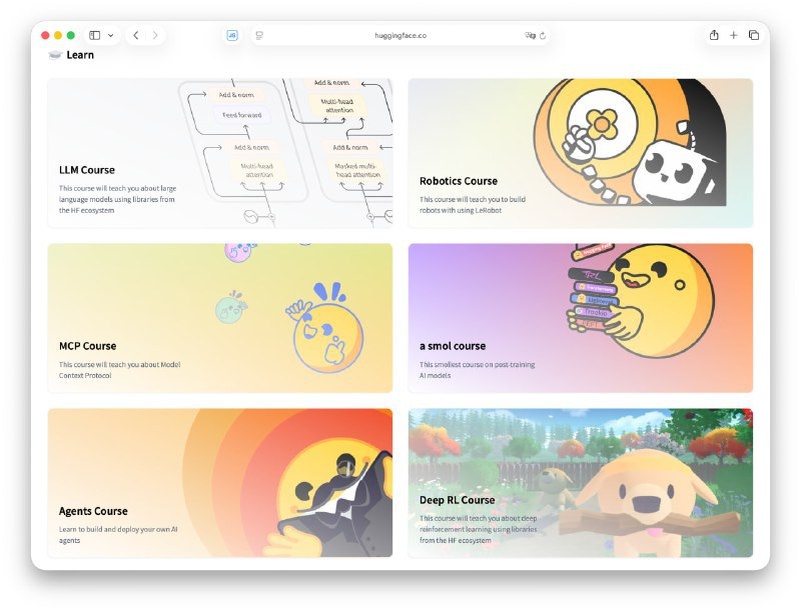 Hugging Face представила 12 бесплатных курсов по ключевым направлениям в области искусственного интеллекта