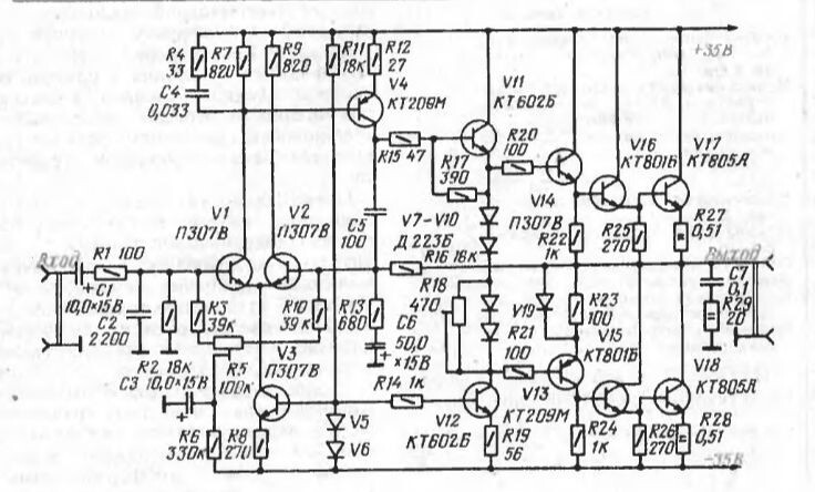 Добрый день . Сегодня пришла мысль поговорить об усилителе Шушурина , а точнее о том как его собрать так чтобы не возникло проблем. Если у Вас найдутся транзисторы прошлых лет то я бы рекомендовал Вам его собрать , все потому что звук у него на мой слух получился какой-то особенный. Начну с предыстории как я его собирал. Делал я его года 3 назад , и были сомнения в выборе этого УНЧ , но все потому что у меня не было таких транзисторов по его схеме . Разговорился с товарищем по работе и он предложил мне дать весь комплект транзисторов просто так , ради того чтобы я не сомневался в том что УНЧ хорошо звучит и не требует какой то особой настройки и подбора деталей. Вот схема усилителя. Что не транзистор то эксклюзив в наше время но я его все таки победил Как оказалось ничего нет в нем сложного и транзисторы выбраны такие потому что именно они были на производстве в те времена , сейчас я думаю что его можно легко повторить соблюдая схему и подбирая современные транзисторы по параметрам .