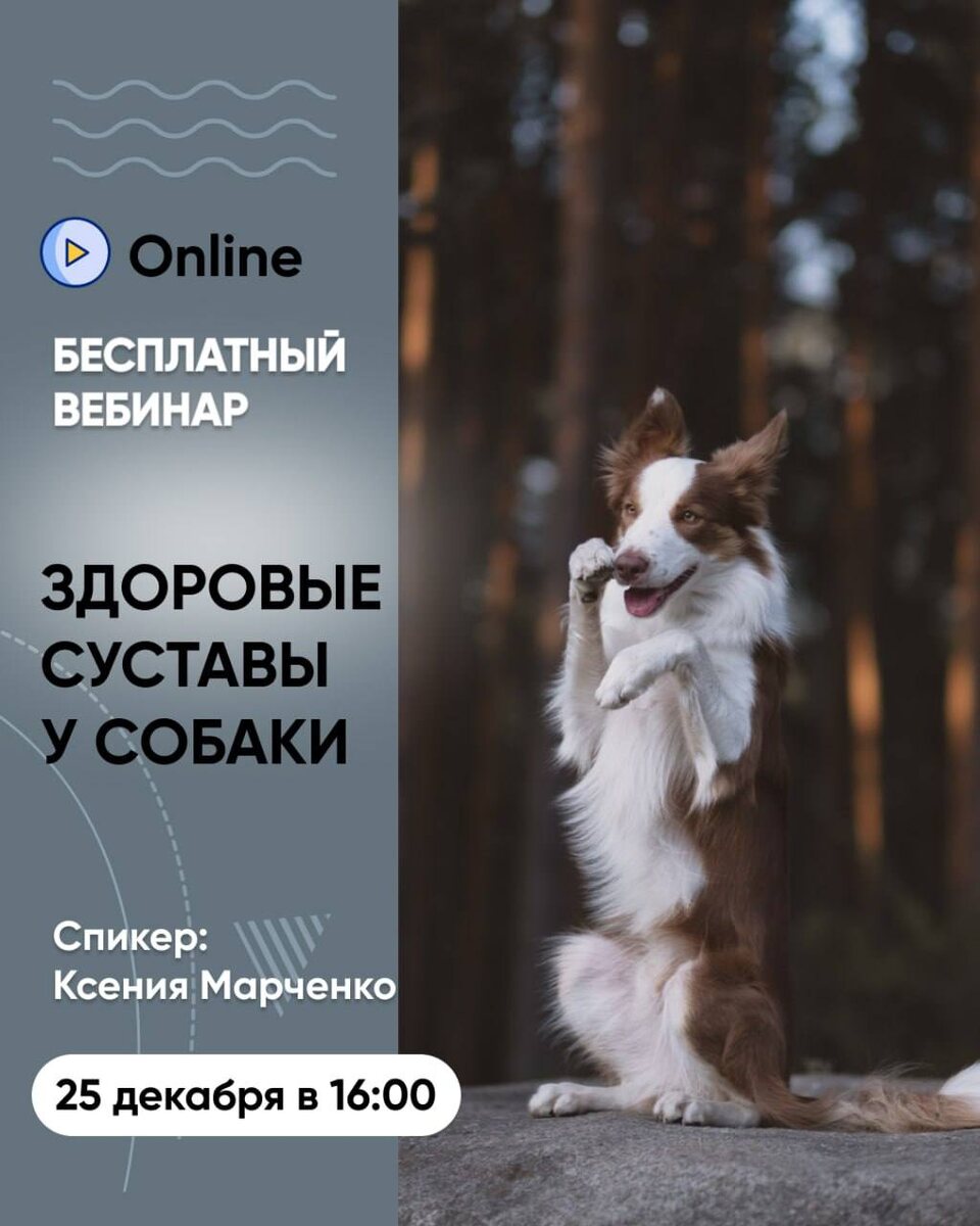 Уже завтра состоится БЕСПЛАТНЫЙ вебинар «Здоровые суставы и успешная реабилитация: как вернуть собаке радость движения