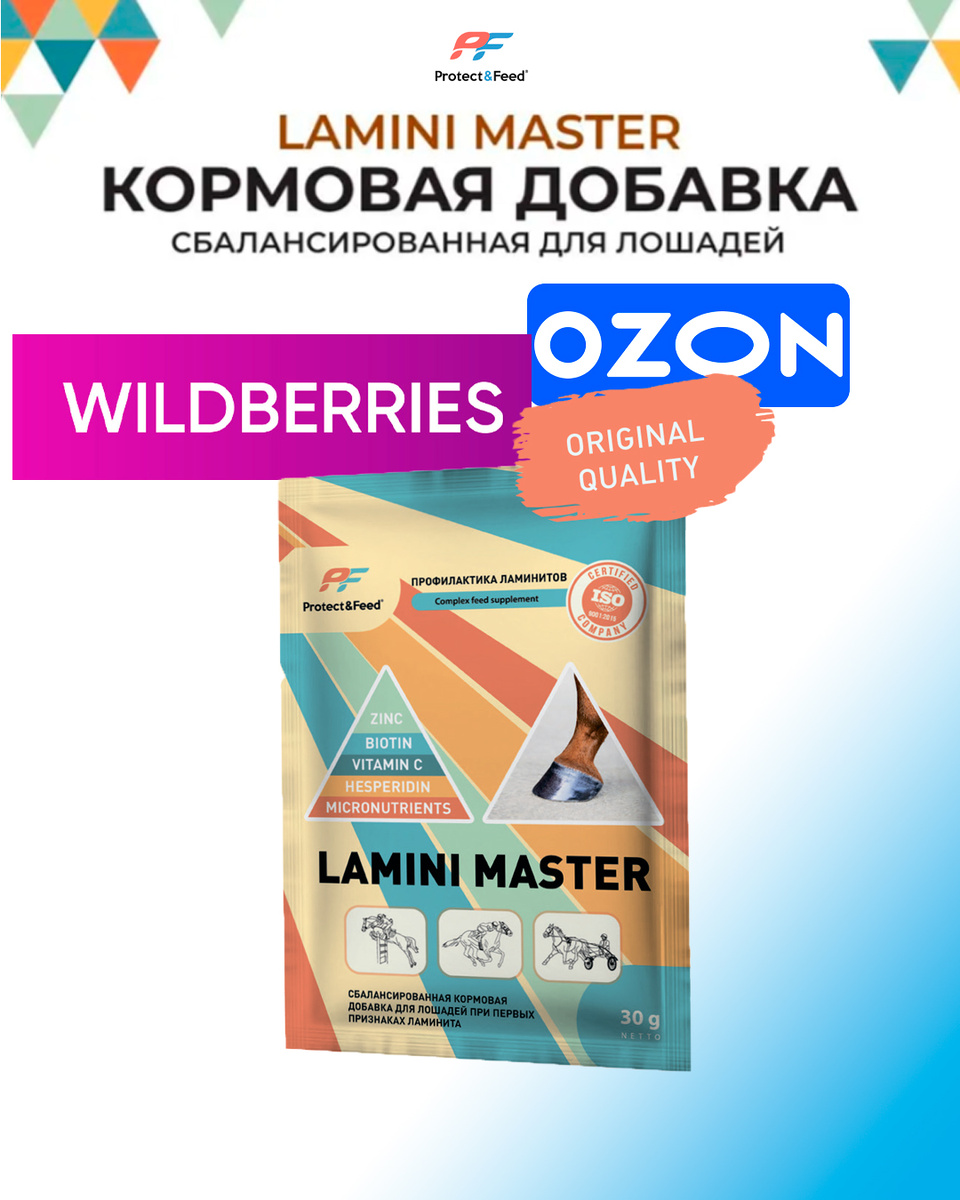 Теперь защитить копыта вашей лошади от ламинита стало проще - оформляйте заказ в один клик, получайте быстро и только оригинальный продукт. 🐎 LAMINI MASTER - сбалансированная кормовая добавка для профилактики и первых признаков ламинита. Создан для лошадей, которые активно работают, тренируются, выступают, набирают вес, находятся в риске или уже проявляют первые симптомы нарушения кровообращения в копытах. ⭐ Что делает LAMINI MASTER? ✔ Нормализует микроциркуляцию крови в копытах.
