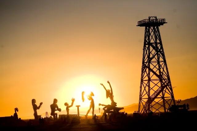 Одним из самых мощных огненных манифестов стал Crude Awakening в 2007 году. Это была гигантская инсталляция в виде нефтяного апокалипсиса. Вокруг стальной нефтяной вышки высотой около ста футов стояли огромные фигуры в молитвенных позах.