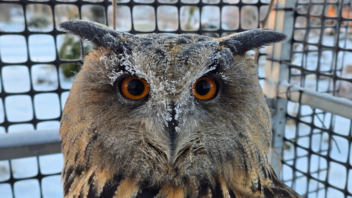 Бородатый неясыть Кофи одну мышь усаел съесть, второую отморозил.