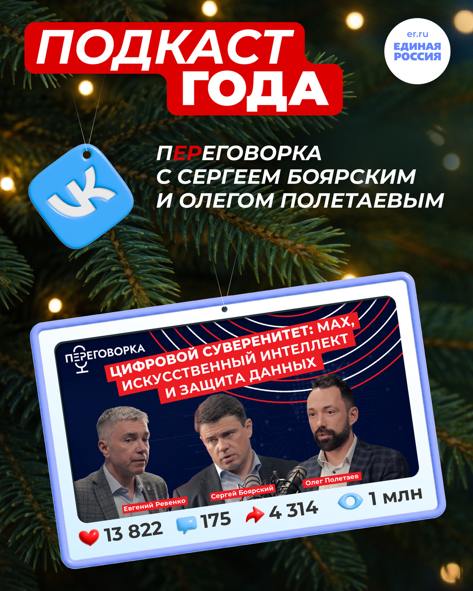 Продолжаем подводить итоги 2025 года! Подкастом года в наших социальных сетях стал выпуск «пЕРеговорки» с Сергеем Боярским и Олегом Полетаевым о цифровом суверенитете и мессенджере МАХ. Только во «ВКонтакте» он собрал более миллиона просмотров. А вы видели этот выпуск? Если нет, делимся ссылкой!