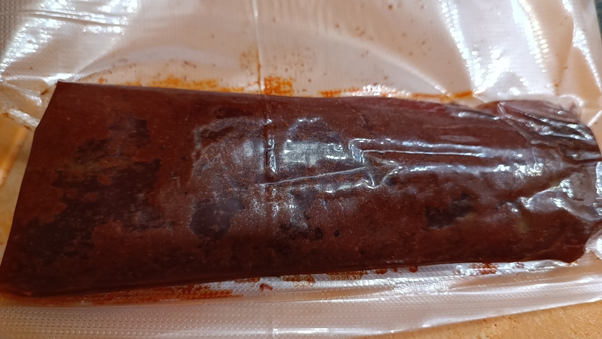 Давно хотел попробовать себя в сыровялении, и наконец дошли руки. Начинать решил с простейшего. Купил свиную вырезку, очистил от жира и плёнок, замариновал нитритной солью, обмазал копчёной паприкой, и в вакуум на неделю в холодильник. Через неделю достал, немного обсушил, плотно завернул в марлю, и подвесил рядом с батареей. Забыл взвесить, поэтому готовность проверял просто ощупывая на плотность. Через неделю мясо достаточно подвялилось на мой взгляд, и мы с супругой приступили к дегустации. Получилось вкусно, достаточно плотное, и в то же время мягкое. Цвет насыщенный, есть небольшой закал, но его легко убрать, если ещё раз завакуумировать мясо на несколько дней, для выравнивания влажности. Вот так это выглядит на столе. Кусок ушёл за пару дней. Рецепт простой: 2% от веса мяса, нитритной соли, пакетик копчёной паприки для обмазки. Вместо паприки можно использовать любую приправу, которая вам нравится, например сушёный чеснок, или смесь кавказских трав.