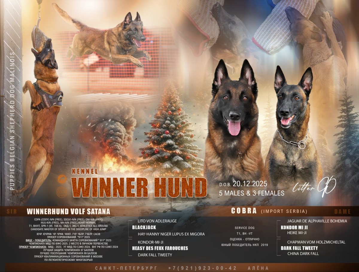 🤫 Свободны для бронирования на данный момент 4️⃣ мальчика и 3️⃣ девочки ✅️Открыты для бронирования щенки Бельгийской овчарки ( малинуа) 🌲 ❄️д.р. 20.12.2025 года❄️ В помете 5 мальчиков и 3 девочки ! ♻️Шикарное происхождение ❗️ Мать Cobra ( import Serbia 🇷🇸 ) Kondor Mi Ji 🇨🇿 - Tweety Darkfall 🇷🇸 Отец WinnerНund Volf Satana 🇷🇺 Blackjack 🇷🇸 - Heasy des Feux Farouches 🇫🇷