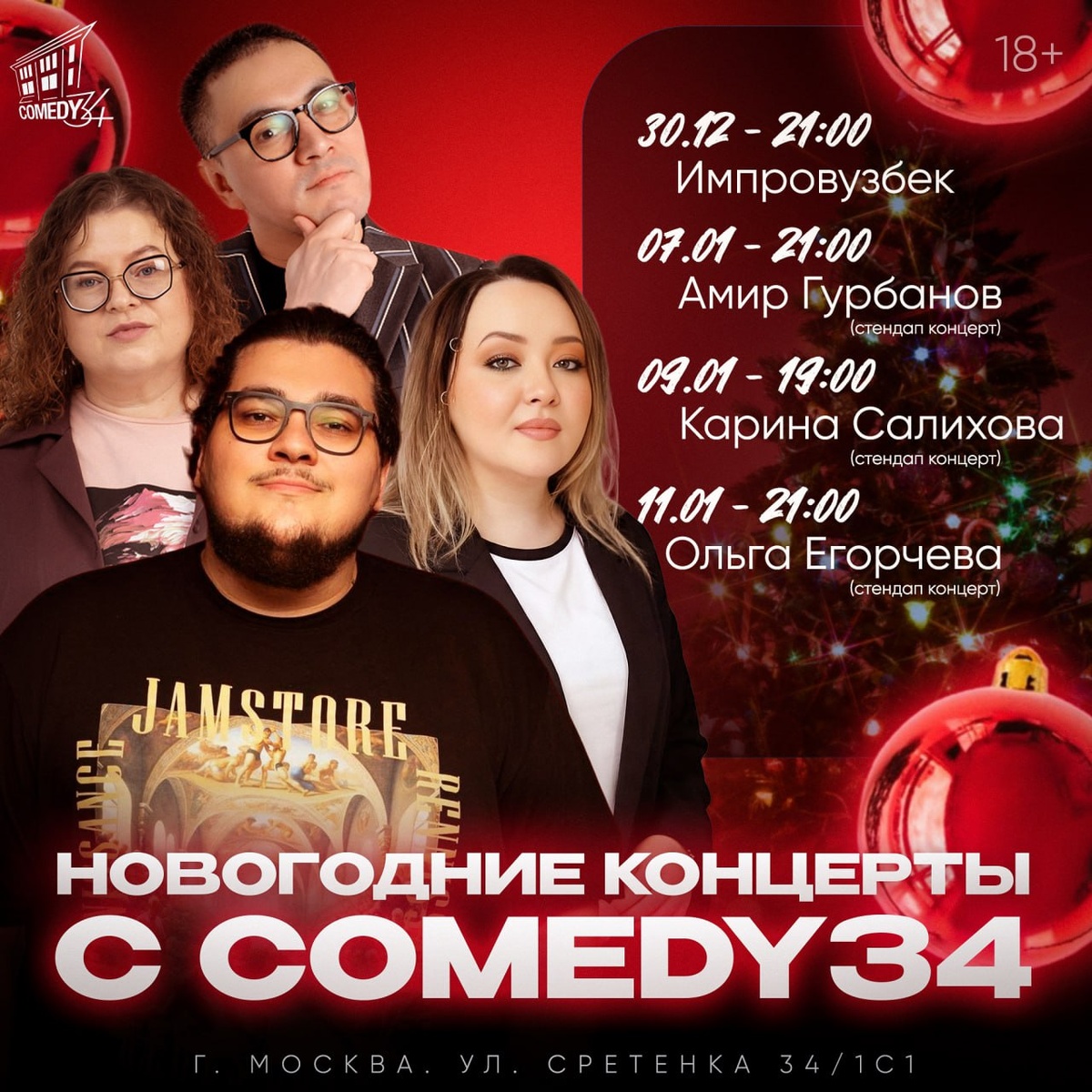 🤩🤩🤩🤩🤩🤩🤩🤩 Ждём вас в этом и следующем году 30.12||21:00 ИмпровУзбек 07.01||21:00 Амир Гурбанов стендап концерт 09.01||19:00 Карина Салихова стендап концерт 11.01||21:00 Ольга Егорчева стендап концерт