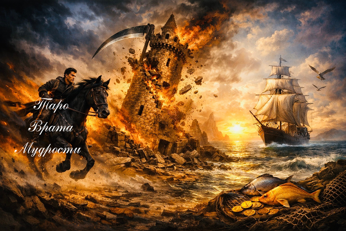 Коса не спрашивает разрешения. Она просто приходит и отсекает. Резко, чётко, иногда больно. И в этот момент кажется, что мир рушится, что земля уходит из-под ног, что ты осталась ни с чем. Но правда в том, что Коса срубает только мёртвое. Только то, что уже давно не питает вас, не даёт роста, не несёт жизни. Ваша Башня это не крепость, это тюрьма. И путь разрушает её не из жестокости, а из милосердия.