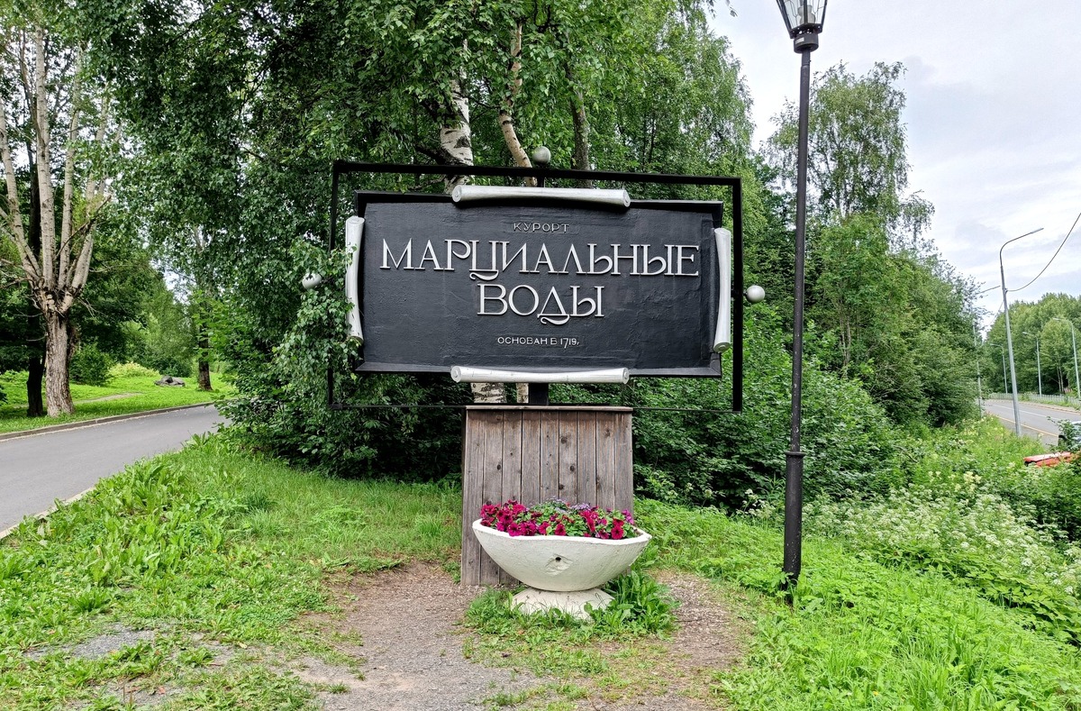 Проехав примерно 15 километров от горы Сампо, наш автобус остановился в посёлке Марциальные воды. Посёлок очень крохотный и фактически представляет собой инфраструктуру, обслуживающую одноимённый курорт. Курорт Марциальные воды основан в 1719 году и считается первым в истории России. Ну а что вы хотели, чтобы русские курорты начинались на югах? Не надо нам такого, вот по дороге в Мурманск – идеальное место.