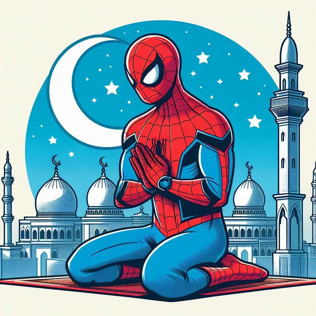 Нью-Йорк шумел, как всегда, но для Питера Паркера мир стал тише после смерти дяди Бена. В тишине этой не было покоя — только вина и вопрос: зачем ему дана сила. В ту ночь он оказался у старой мечети, когда крики прорезали воздух. Преступники ворвались внутрь, думая, что там легко можно поживиться. Питер действовал быстро, без ярости — словно что-то внутри удерживало его. Он связал нападавших, вывел людей наружу и исчез, не дожидаясь благодарности. Имам нашёл его позже. Не как Человека-паука — как человека. Он не задавал лишних вопросов, только смотрел так, будто видел боль под маской. Их разговоры стали регулярными. О вине. О намерении. Об ответственности, которая не возвышает, а обязывает. Питера поразила простота ислама. Один Бог. Чёткая грань между дозволенным и запретным. Мысль о *ния* — что ценность поступка определяется намерением. И *амана* — доверие, которое нельзя предать. Он не искал бунта против прошлого. Он искал очищения. Когда он произнёс шахаду,