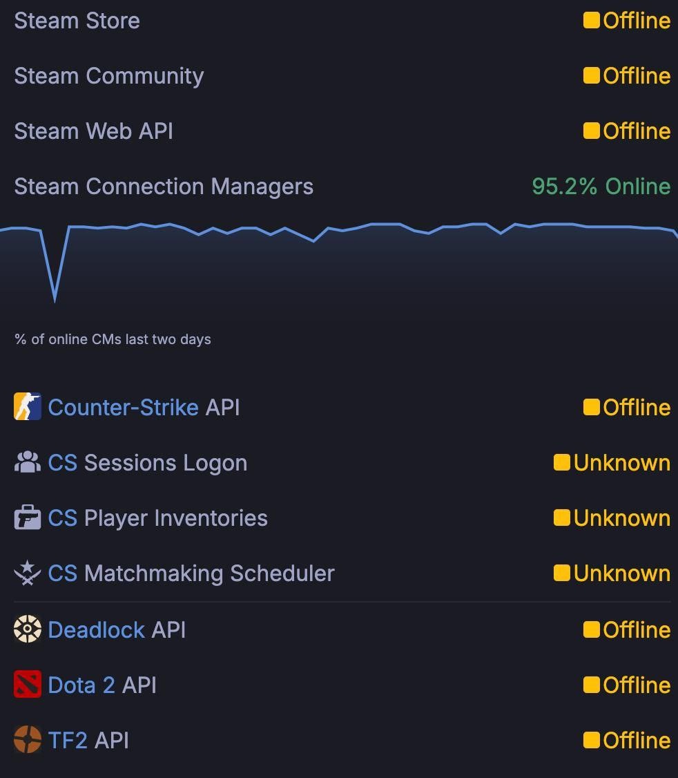 😭 Steam упал по всему миру — вместе с площадкой упали сервера TF2, CS2 и Dota 2
