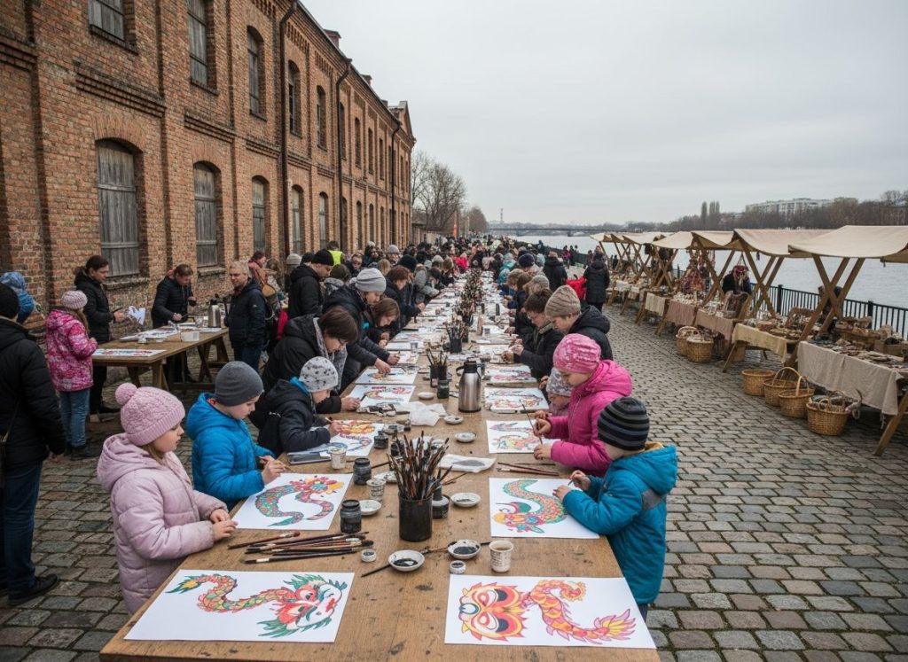 В эти выходные в городе М на набережной у старого пакгауза прошёл дневной культурный маркет: мастерили бумажные маски, пробовали чай на коротких дегустациях и слушали, как местные иллюстраторы объясняют, почему «дракон» — это не всегда про пафос. Вход был свободным, за участие в мастерских просили символические 200–400 рублей, а очередь выстроилась не к кофе, а к столу с кистями и тушью — редкий случай для нашего города. Организаторы говорят, что тема шанхайских драконов пришлась кстати как фон: «Это образ из уличной визуальной культуры, а не музейная витрина», — объяснила куратор площадки Алина С., пока дети спорили, чей хвост длиннее. В М шанхайские драконы звучат слегка комично — примерно как попытка надеть праздничный костюм на будний маршрут до трамвая, — но именно поэтому они и работают: не давят значимостью, а вовлекают. Для городских художников это ещё и тест на спрос: если люди готовы задерживаться у стендов не на минуту, значит, небольшим галереям и мастерским есть на кого ра