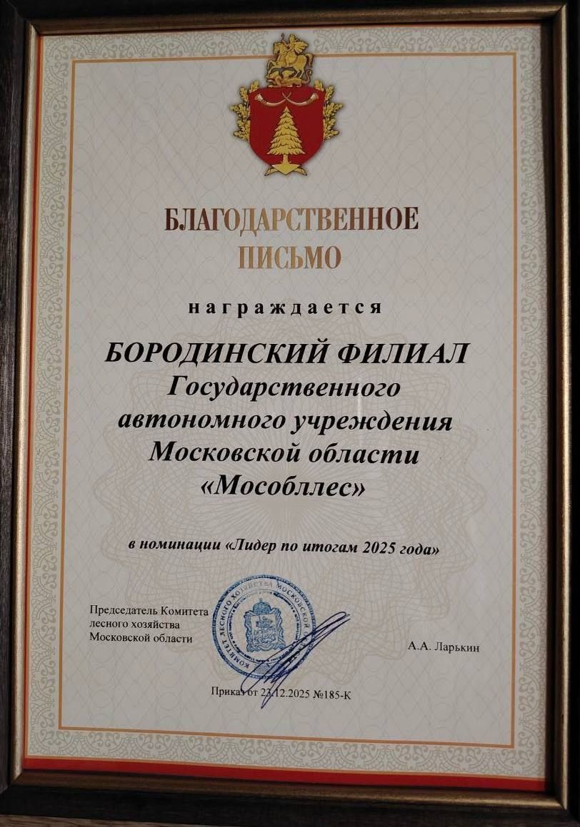 Бородинский филиал «Мособллес» признан лучшим по итогам 2025 года