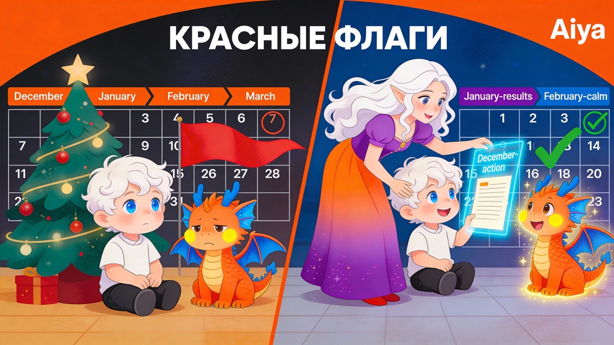 Рубрика: «КРАСНЫЕ ФЛАГИ» Тема: «Красный флаг: Ребёнок молчит в 3 года, а вы думаете, что "в каникулы рассосётся"» 🚩 КРАСНЫЙ ФЛАГ #НОМЕР 6: Ожидание чуда вместо действия СЦЕНА: Ваш ребёнок 3 года молчит. Вы думаете: «Новый год, каникулы, волшебство… может, само?» ЭТО НЕ ВОЛШЕБСТВО. ЭТО ОТСРОЧКА ПРОБЛЕМЫ. Что говорит наука: В 3 года ребёнок должен говорить 300–500 слов и строить фразы. Если он молчит — это не «поздно заговорит». Это СРОЧНАЯ КОНСУЛЬТАЦИЯ. Что произойдёт, если вы подождёте до января: Январь: вы в панике, потому что в саду сказали «что-то не так» Февраль: спешные поиски логопеда, очереди Март: ребёнок в стрессе, потому что вы в стрессе Апрель: вы начинаете, но уже на 3 месяца позже оптимального времени Что произойдёт, если вы действуете СЕГОДНЯ (24 декабря): До Нового года успеете получить план В каникулы спокойно начнёте В январе увидите первые результаты В феврале уже будете спокойны Мудрость Феи Айя: «Волшебство Нового года не в том, что проблемы исчезают. Волшебство —
