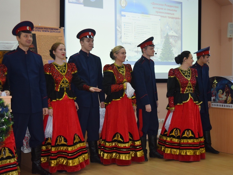 Накануне празднования Рождества Христова сотрудники кафедры «Православной культуры и теологии» при поддержке городской думы города Шахты, а также Шахтинского городского отделения Всероссийского общественного движения «Волонтеры культуры» и Ростовского отделения Международной общественной организации «Императорское Православное Палестинское Общество» организовало и провело 24 декабря в зале заседаний Ученого совета института мероприятие под названием «Донское Рождество: история и смыслы православных праздничных традиций», посвященное грядущему празднику. В рамках проекта проводился конкурс на самое красивое и оригинальное новогодне-рождественское украшение – композицию, инсталляцию, соответствующее православным традициям праздника Рождества Христова и Рождественских Святок. С докладом перед собравшимися выступил старший преподаватель кафедры православной культуры и теологии Илья Геннадьевич Шарков. Во время мероприятия члены научного студенческого кружка «Православный восток» кафедры пр