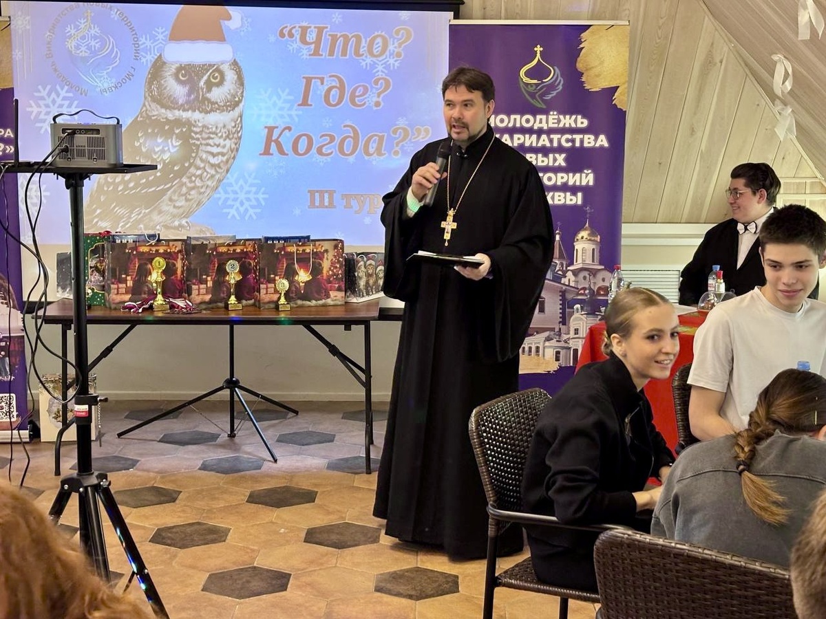 🥇Победителем серии игр 2025 г. стала команда храма Успения Пресвятой Богородицы в Александрово Новотроицкого благочиния, набравшая новое рекордное количество баллов за три тура: 💯! 🥈Второе место заняла команда «Пересвет» храма Святого Духа в Первомайском. 🥉А третье призовое место досталось команде «Преображение» храма Преображения Господня в Коммунарке. Команда Молодежного клуба «Заповедь» Казанского храма в Сосенках получила особый приз как самая «Музыкальная команда серии игр 2025 года». Все команды получили призы и подарки за участие в совместном интеллектуальном мероприятии. 🙏 На протяжении всей игры в зале присутствовал руководитель секретариата викариатства и настоятель храма Святого Духа в Первомайском иерей Евгений Диммерт, а также ответственные за работу с молодежью в благочиниях и настоятели нескольких храмов, которые приехали поддержать свои молодежные команды. В завершение игры иерей Евгений Диммерт поблагодарил организаторов и команды за активное участие и отметил