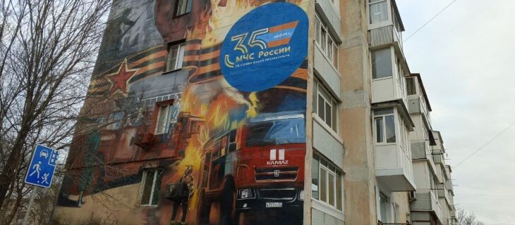В Симферополе появился мурал, посвящённый героизму сотрудников МЧС
