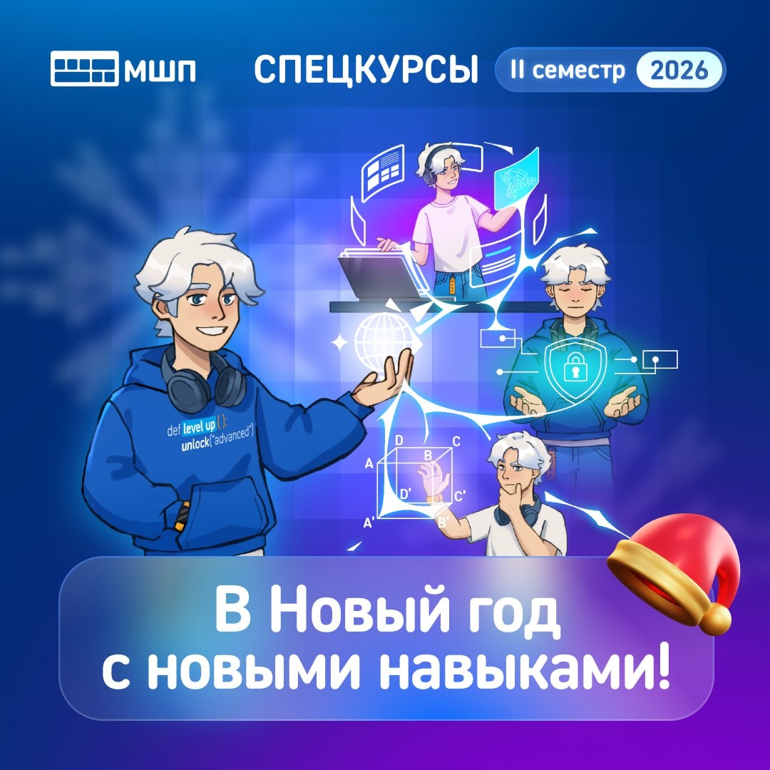 ! Новый год — это не только праздник и время каникул. Это возможность поставить новые цели и сделать первый шаг к ним! Именно для этого в Московской школе программистов существуют спецкурсы. ❓ Спецкурсы — это углублённые курсы сверх основной программы, открывающие ученикам возможность изучать новые дополнительные темы и развиваться в интересных им направлениях. ❄️ Почему стоит пойти на спецкурсы? — это новые темы и новые вызовы — работа с теми направлениями, которые выходят за рамки основной программы — развитие мышления, самостоятельности и интереса к предмету — возможность осознанно выбрать, куда двигаться дальше в IT и инженерии 💬 Наши ученики часто говорят, что именно спецкурсы помогают «поймать» своё направление. У спецкурсов 10 направлений: MATH, IT ART, WEB, CYBERSECURITY, DEVELOPMENT, ENGINEERING, HARD, EXAM, ROBOTS и AI — выберете то, что вам интересно! Успейте записаться на спецкурсы, количество мест ограничено! ✏️ Записаться можно в личном кабинете Informatics LMS