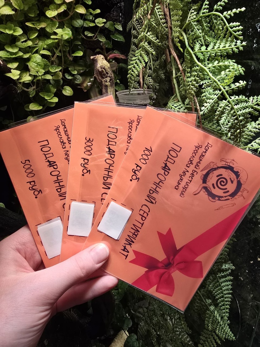 ! 🦎✨ Подарочный сертификат от нашего зоомагазина — это идеальный новогодний сюрприз для ценителя экзотики или для того, кто мечтает к ней прикоснуться. ✅ Вместо риска — свобода выбора. Близкий вам человек сам выберет питомца или какие-то ништяки для него. ✅ Вместо одной вещи — множество возможностей: от ручного геккона до аквариума "под ключ". ✅ Вместо сомнений (угадали или не угадали) — только положительные эмоции и благодарность! Подарите не вещь, а новогоднее чудо и право на собственное уникальное открытие. 🎁 Выбирайте сумму, а мы оформим волшебство! Сертификаты можно приобрести через ЛС сообщества или на кассе. Действовать они будут весь 2026 год. Возможна частичная оплата сертификатом, да и вообще, у нас много чего возможно, потому как мы клиентоориентированные ребята)