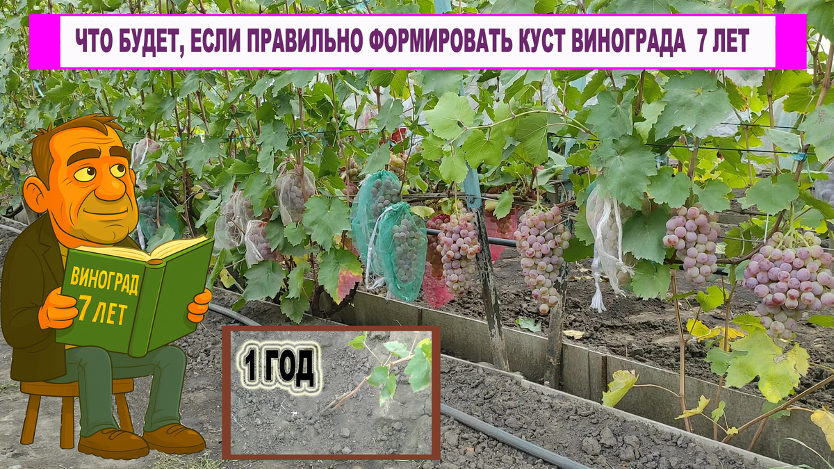 🍇 Здравствуйте, виноградари! С вами снова Юрий Егорутин. В этой статье я хочу провести небольшой обзор, небольшой отчёт по той агротехнике, о которой я рассказываю на своём канале на примере одного семилетнего куста винограда.
