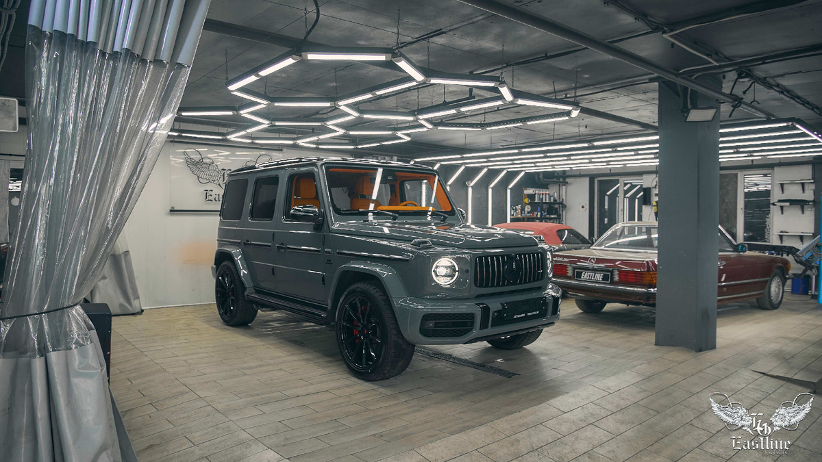Приветствуем вас, дорогие друзья! Как вы знаете, у нас в EastlineGarage всегда в работе самые разные автомобили: от современных до классических. Это и Рейндж Ровер, и BMW 2002, и AMG GT, и Mercedes SL 420, и многие другие. И к каждому автомобилю у нас всегда индивидуальный подход. Мы работаем над тем, чтобы машины, оказавшиеся в нашей студии, стали еще более роскошными и эксклюзивными. И сейчас мы расскажем историю преображения Mercedes-Benz G 63 AMG в ярко-серый с салоном в стиле заводной апельсин!