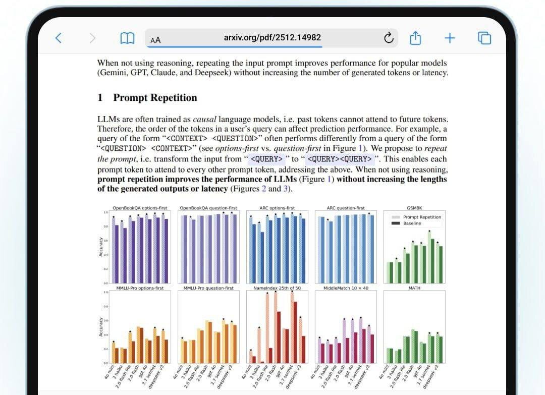 Повторение промпта улучшает ответы нерассуждающих LLM, выяснили в Google