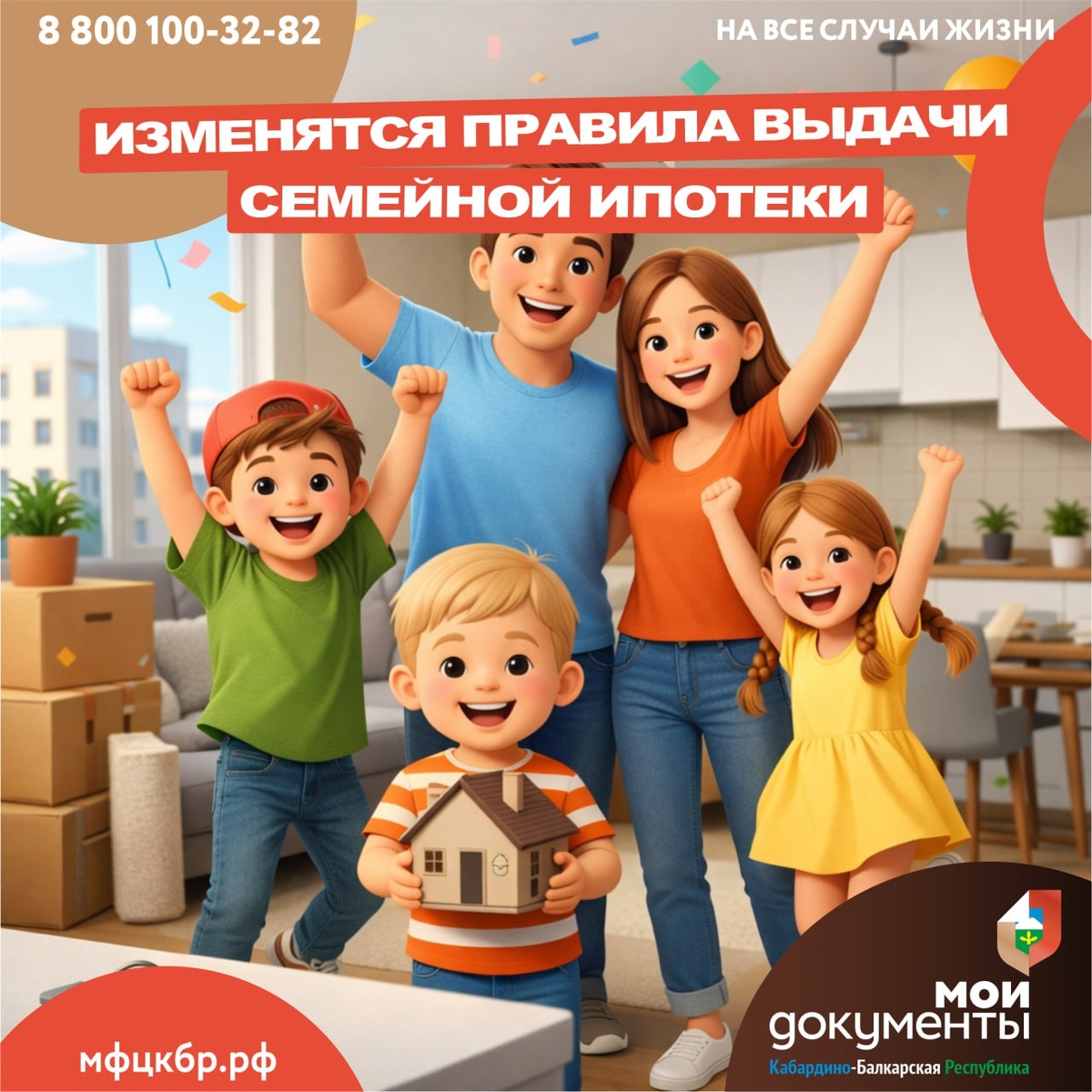 нескольких льготных кредитов одной семьей. ⁉️Вводится принцип «одна семья — одна льготная ипотека». Муж и жена будут обязаны выступать созаемщиками по одному договору. Новое правило направлено на предотвращение злоупотреблений, когда муж и жена брали два отдельных кредита, и так называемых донорских схем. Если до 1 февраля 2026 года один из них уже оформил семейную ипотеку, второй потеряет право на получение своей. 🗂 С декабря 2023 года действовало правило «один заемщик — одна льготная ипотека», но теперь ограничение распространяется на семью в целом. 📝Условия программы: ставка — 6% годовых срок действия программы — до 2030 года кто может получить — семьи с двумя и более детьми, с ребенком до шести лет включительно или воспитывающие ребенка-инвалида сумма кредита — 12 млн рублей (Москва, Санкт-Петербург, Московская и Ленинградская области), 6 млн рублей (остальные регионы). 🏠С 1 апреля 2025 года программа распространяется и на вторичное жилье. Есть вопрос? Пишите ✏️ 🤎 #МФЦКБР