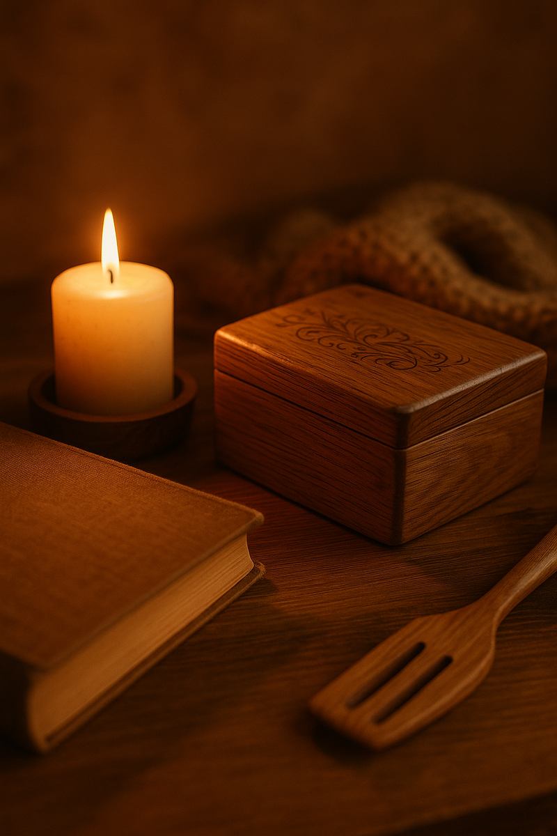 Есть вещи, которые мы не просто используем — мы к ним возвращаемся. Чашка, с которой начинается утро. Маленькая шкатулка на полке. Подставка под свечу, потемневшая от времени. Каждая из них хранит след прикосновений, запах, звук, ассоциацию. Уют — не то, что можно купить в магазине. Он рождается там, где вещи становятся частью жизни. Где предмет не просто выполняет функцию, а несёт эмоцию. Психологи называют это «эмоциональной памятью предметов». Когда мы касаемся старой деревянной поверхности, мозг реагирует теплом —в ней зашит опыт, повторяющееся действие, спокойствие. Дерево особенно сильно влияет на восприятие: его текстура вызывает чувство доверия и защищённости. Оно тёплое, неидеальное, живое. Поэтому даже новая вещь из дерева может ощущаться “своей”, а старая — будто разговаривает шёпотом воспоминаний. Предмет с историей — это якорь: он напоминает, что время идёт, но тепло можно сохранить. Ритуалы уюта — это маленькие действия, в которых прячется порядок мира. Зажечь свечу вече