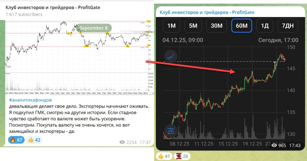 Закрыт ГМК по 146-147 рублей. Именно из-за намечающегося разворота в платине. ☝️За 3 месяца эта идея принесла более 15% прибыли. Инвесторский клуб - https://t.me/SubProfitGateBot