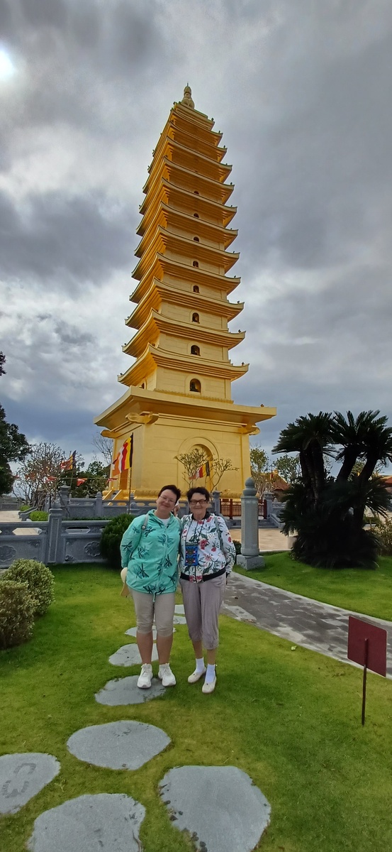 Рядом располагается 13-этажная золотая ступа Куанг Минь, которая особенно красиво выглядит при солнечном свете.