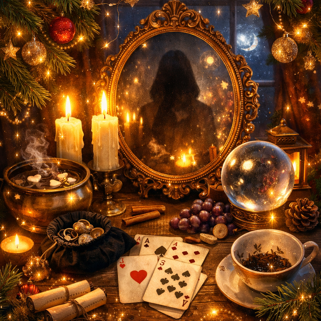 🔮 У славян гадания становились особенно популярными в периоды календарных переходов (дни равноденствия, солнцестояния), и в том числе — с конца декабря по середину января, включая Святки (от Рождества до Крещения). Народ верил, что в эти дни граница между миром людей и потусторонним становится тоньше, и можно получить ответы от сил, которые обычно «спят».