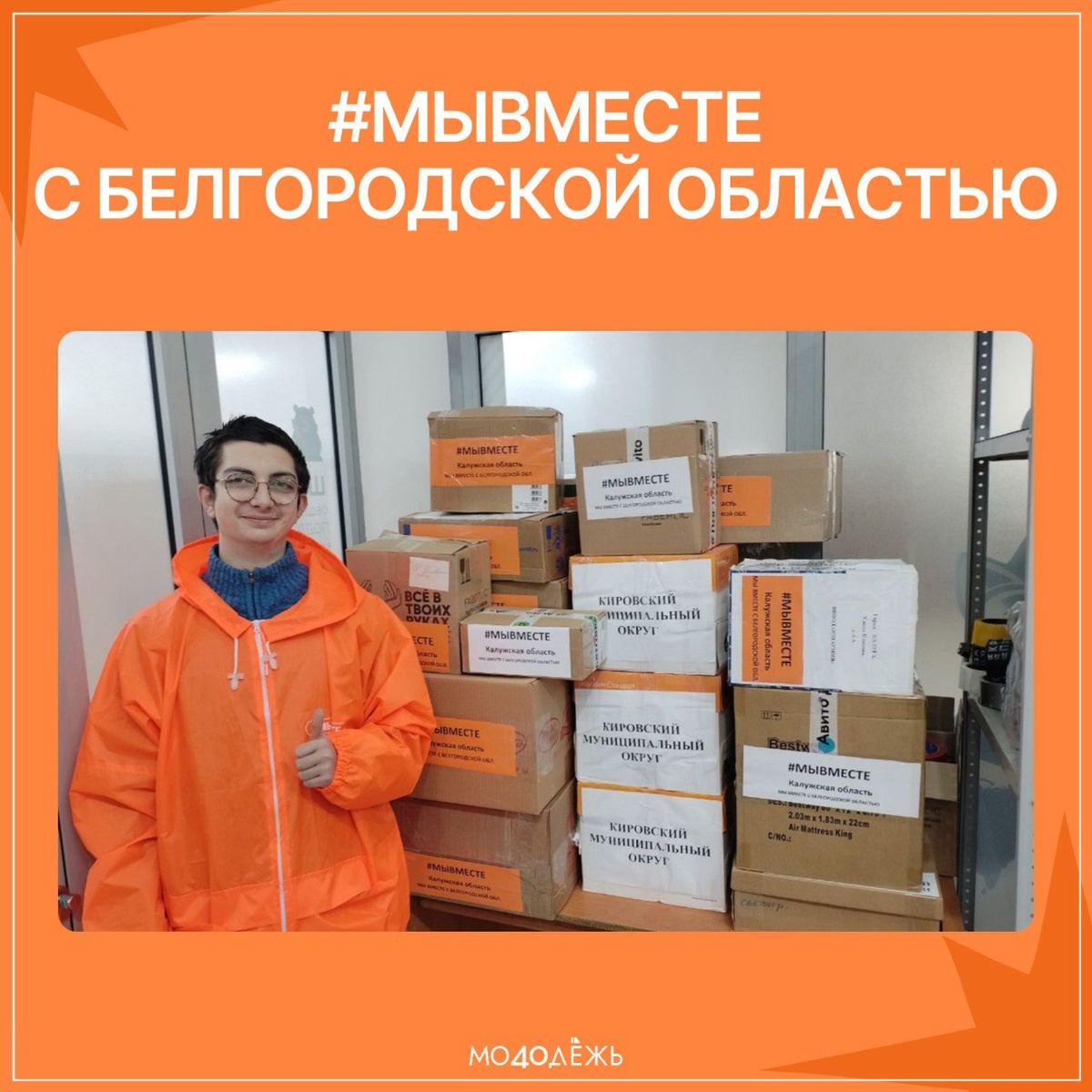 ! На прошлой неделе завершился региональный сбор светоотражающих элементов для жителей Белгородской области. Благодаря активной поддержке калужан удалось собрать большое количество светоотражателей — важных и нужных предметов, которые помогут обеспечить безопасность белгородцев в тёмное время суток. Добровольцы Калужского регионального штаба #МыВместе упаковали все собранные элементы и бережно сформировали из них более 20 посылок, которые отправятся в Белгородскую область. Огромное спасибо всем, кто принял участие в сборе. Вместе мы сможем больше! 🧡 #Молодёжь40 #Добро40